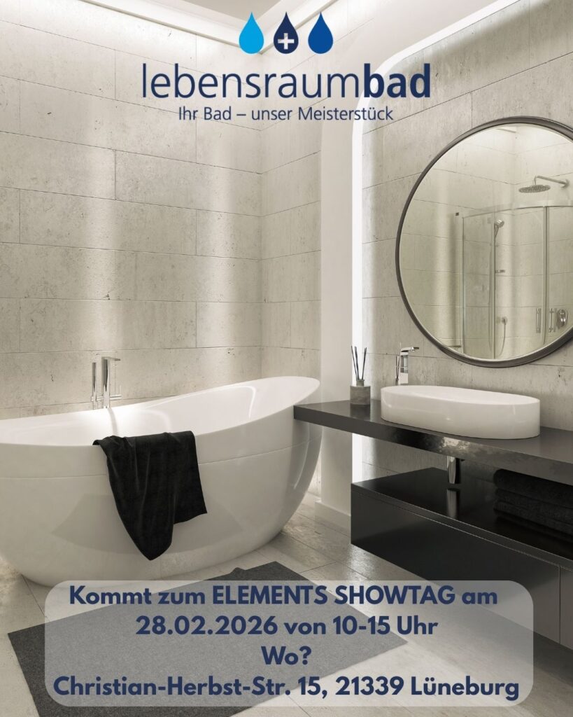 Am 28.02.2026 laden wir zum Showtag bei ELEMENTS ein. Entdecken Sie moderne Bad- und Heizungswelten, neueste Technik und starke Ideen für Ihr Zuhause. Wir sind dabei und freuen uns auf Ihren Besuch.